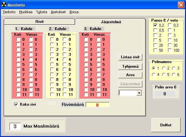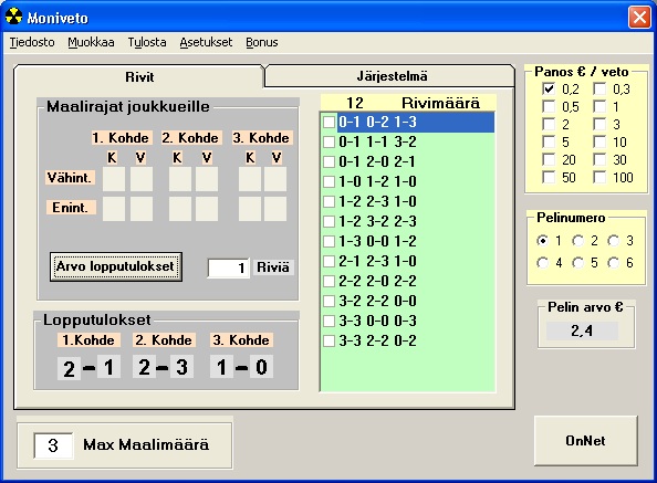 Moniveto on itse kehittämä ohjelma jolla voidaan arpoa rivejä ko. peliin Voit: