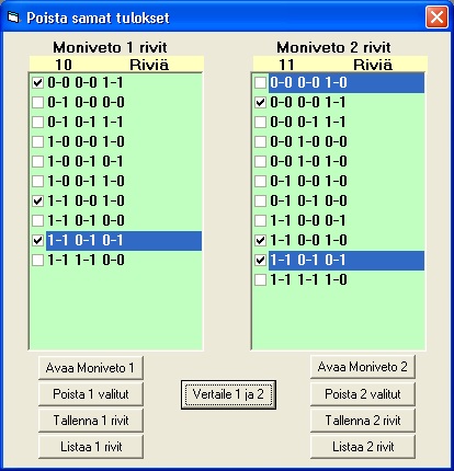 Voit vertailla 2 rivitiedostoa ja poistaa esim. samat |